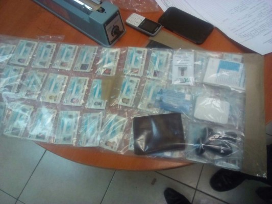 Además cuatro licencias de conducir, hojas membretadas de varias casas comerciales, al menos dos teléfonos celulares, además de un vehículo turismo marca Hyundai color blanco con matrícula PDT4680 en el cual se conducían.
