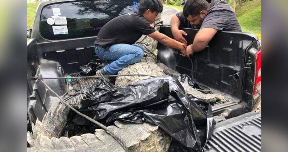 Un enorme cocodrilo fue encontrado sin vida la mañana de este sábado en Islas de la Bahía.