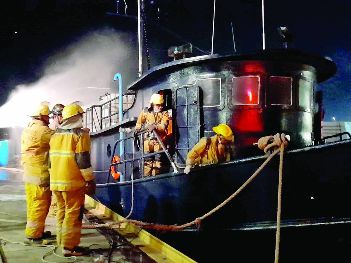 1__En el combate a la conflagración en el buque los bomberos usaron cuatro unidades, incluyendo una de rescate.