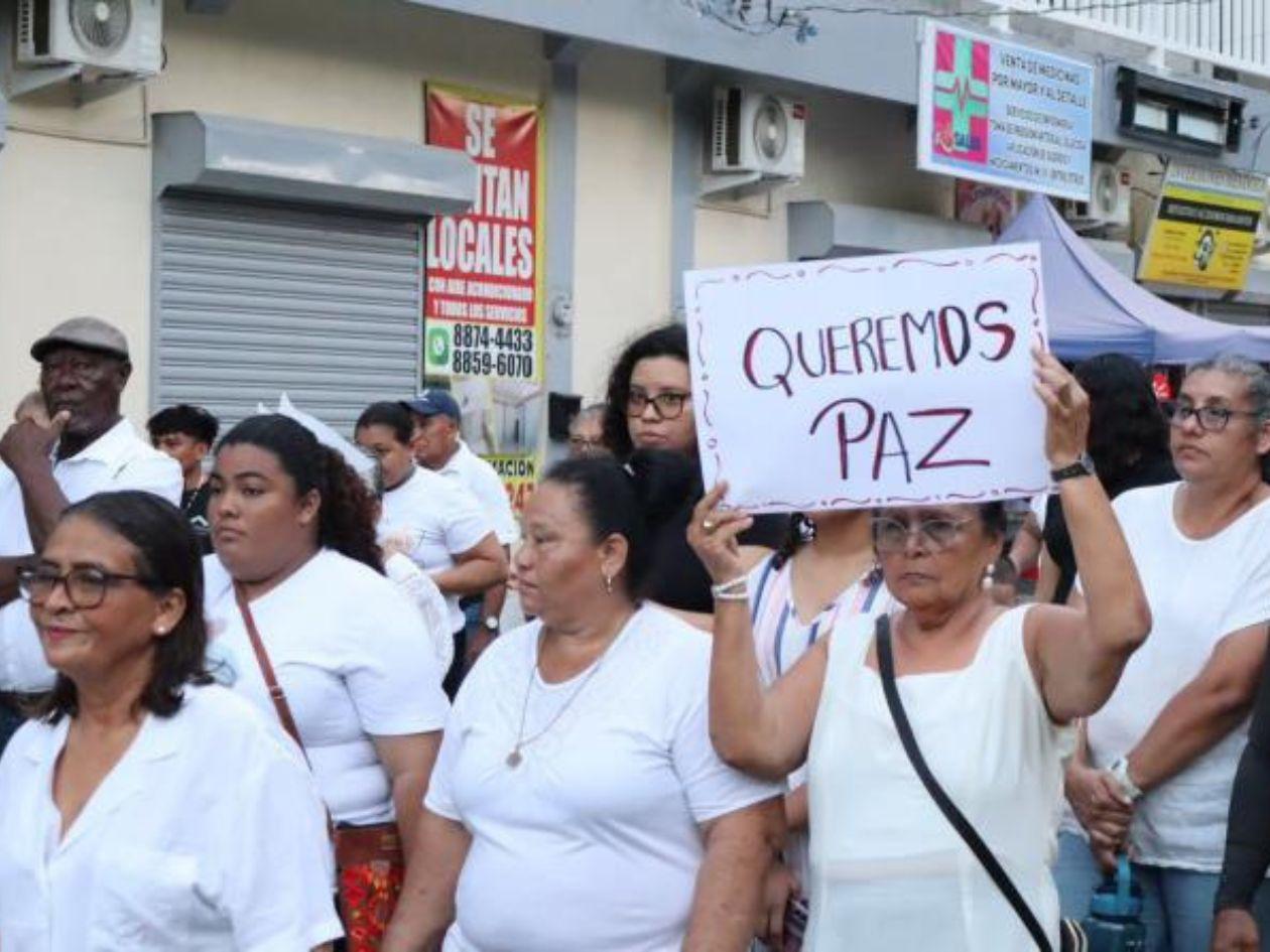 El padre Víctor Cámara, párroco de la comunidad, encabezó la caminata desde la Cruz del Perdón hasta el parque central. Todos vestidos de blanco y en silencio en honor a las víctimas, también portaban cartulinas con mensajes alusivos clamando la paz.