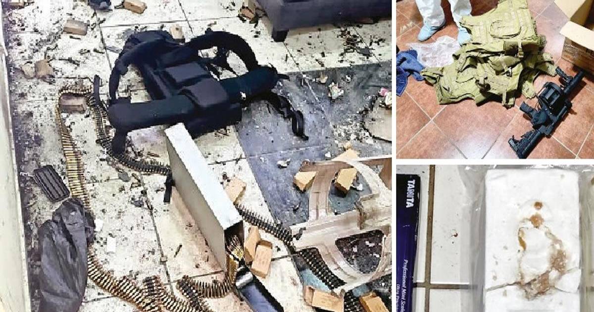 Además, en la residencia encontraron 169 cartuchos de 9 mm, un lanzagranadas, una escopeta, 10 cartuchos de escopeta, una pistola automática 9 mm, un cargador de pistola con 15 cartuchos 9 mm, un cargador de fusil con 23 cartuchos, tres celulares, nueve chalecos antibalas, un kilo de cocaína, una billetera con dos identidades de nacionalidad guatemalteca, 305 quetzales, fragmentos de dos granadas de mano F1, cinco granadas de diferentes tipos. Se decomisó también un “pick-up” Toyota.