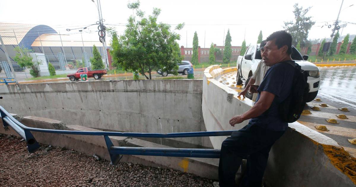 La tarde del lunes, un bus de la ruta Carrizal-Cascadas-UNAH-La Sosa circulaba por el bulevar Suyapa y cayó en el túnel que conecta la residencial El Trapiche, a inmediaciones del Polideportivo de la Unah.