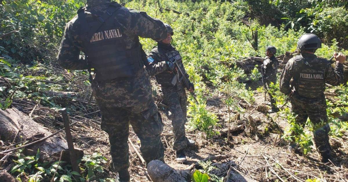 Equipos de la Dirección de Información Estratégica y de la Base Naval de Puerto Castilla, en coordinación con la Dirección de Lucha Contra el Narcotráfico, Maras y Pandillas, localizaron y aseguraron “una plantación con arbustos de hoja de coca en aproximadamente 8 manzanas de tierra (11,4 hectáreas) contabilizando 64,500 arbustos”, indicó la misma fuente en la red social X.