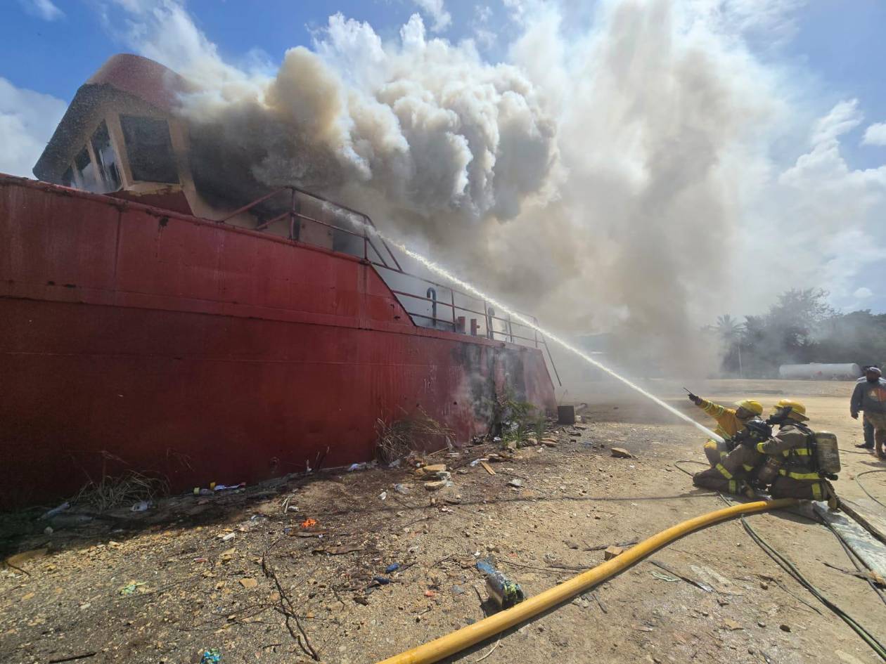 La emergencia se reportó en la embarcación "Lori G.", una estructura de metal de 60 pies de eslora y 20 de manga, la cual se encontraba envuelta en llamas al momento del arribo de las unidades.