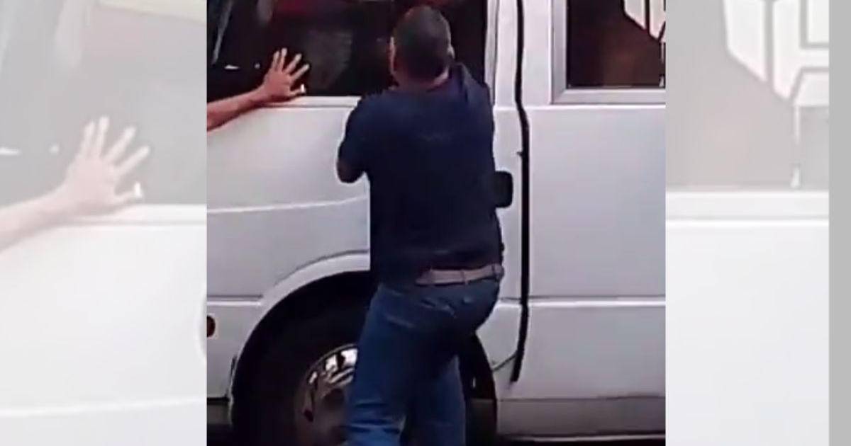 En un video que se ha viralizado en la redes sociales se puede ver que uno de los buseros se baja e intenta bajar al otro conductor que desde adentro de la unidad comienza a lanzar montadas.