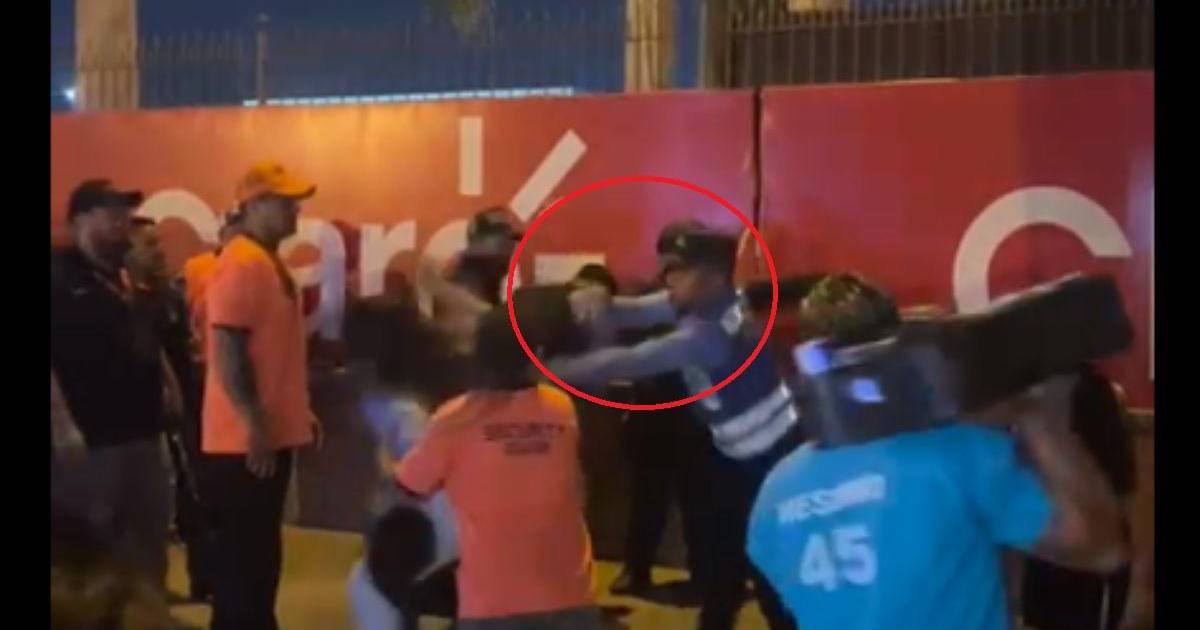 Un policía le dio un tremendo empujón durante el concierto de Broncos en San Pedro Sula y todo ha quedado registrado en un video que se ha viralizado en las redes sociales.