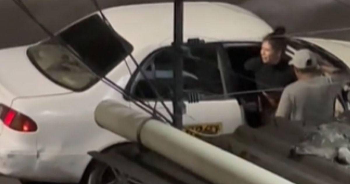 En el material gráfico se observa al taxista forcejeando con una mujer que se niega a abandonar el taxi.