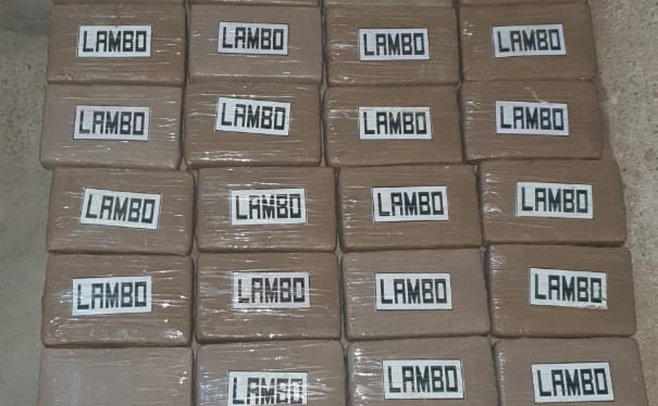 Durante la inspección del vehículo se localizó 44 paquetes rectangulares envueltos en cinta adhesiva y color café, 42 con el logotipo de Lambo y dos sin logotipo.