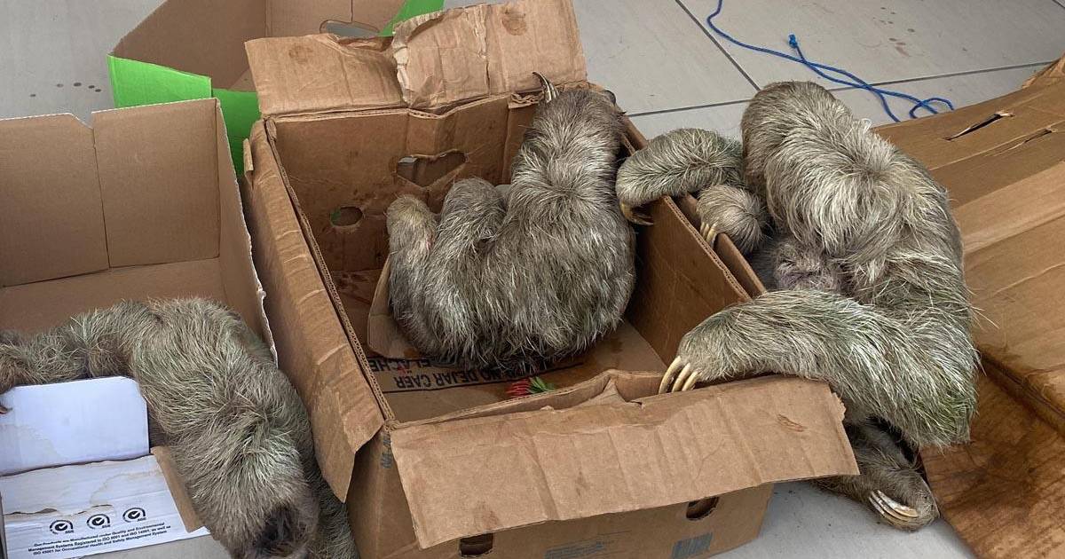 Los osos perezosos , cuatro adultos de cuatro años aproximadamente y una cría de pocos meses de nacido, eran transportados en cajas por un hombre que fue detenido por la policía tras una denuncia anónima.