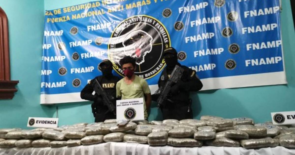 En posesión de 182 libras de supuesta marihuana, agentes de la Fuerza Nacional Antimaras y Pandillas (FNAMP) capturaron a Marvín Godoy (27) alias 'El Mecha' en la aldea Roma de Jutiapa, Atlántida, zona norte de Honduras.