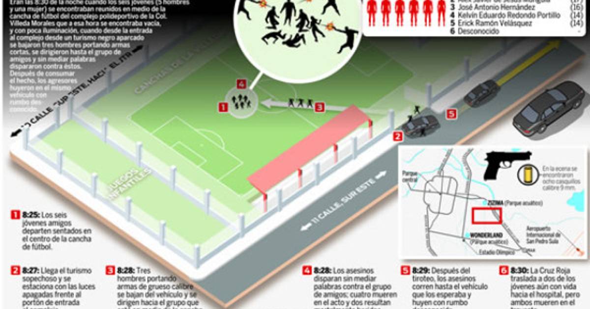 Algunos vecinos de la Villeda Morales escucharon los disparos, pero hicieron caso omiso, pues imaginaron que se trataba de quema de pólvora por la temporada navideña que se acerca. “Cuando escuché las explosiones pensé que eran cohetillos, porque casi todas las noches llegan varios muchachos a esa cancha a platicar y llevan pólvora”, dijo una vecina del sector.