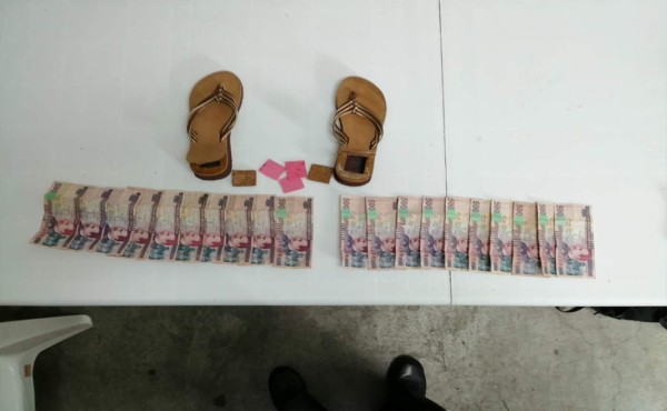 La mujer llevaba oculto el dinero en la plantilla de las sandalias, pero al pasar el calzado por el escáner se detectó que las mismas habían sido manipuladas, procediendo a revisarlas y descubriendo en cada una un paquete conteniendo la cantidad de 5,000 lempiras, los dos paquetes iban envueltos en hoja de papel en donde se detallan nombres y cantidades de dinero.