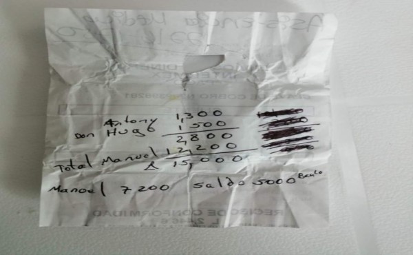 Escrito que la fémina llevaba junto con los miles de lempiras.