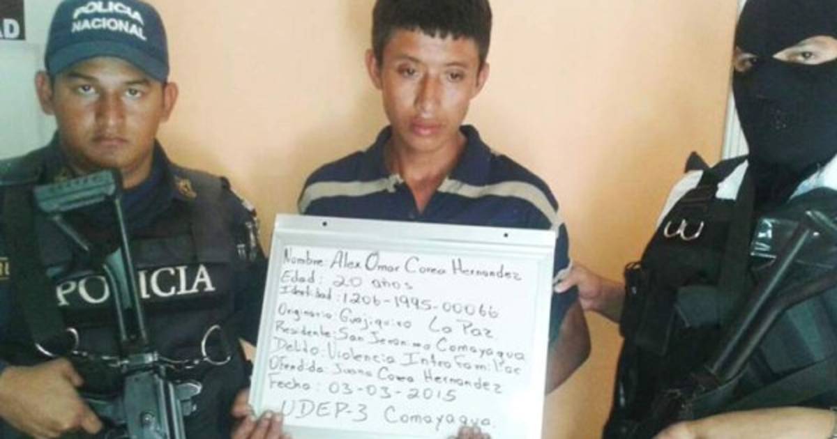El labrador Alex Omar Corea Hernández (20), originario de San Jerónimo, Comayagua, con domicilio en la aldea Las Crucitas de la misma comprensión municipal, fue capturado por agentes de la Dirección Nacional de Investigación Criminal (DNIC) y presentado ante la Fiscalía por los delitos de violencia intrafamiliar y violación en perjuicio de su propia madre de 51 años.