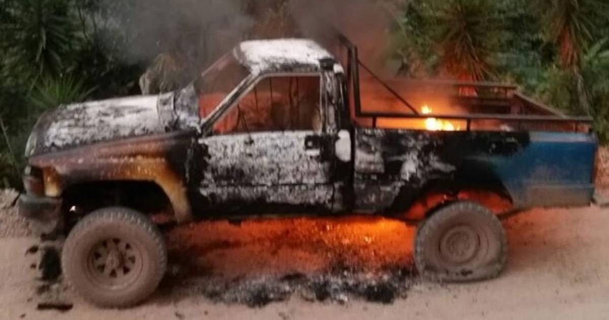 Dos hombres tirotearon a un vehículo y posteriormente lo incendiaron en la aldea El Aguaje del municipio de Santa Rita, departamento de Santa Bárbara, en el occidente de Honduras.