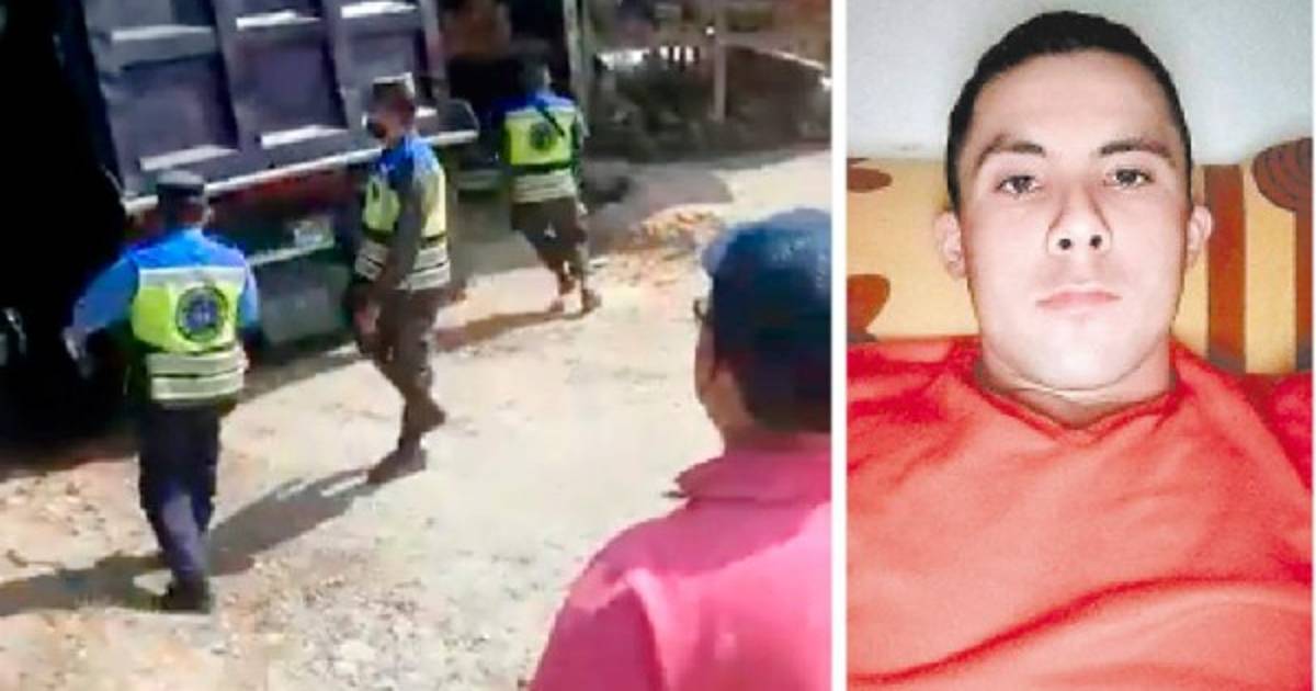 En las imágenes se puede observar a los agentes que rodean la volqueta y segundos después se escuchan las detonaciones de cuatro disparos y luego los gritos del joven herido.