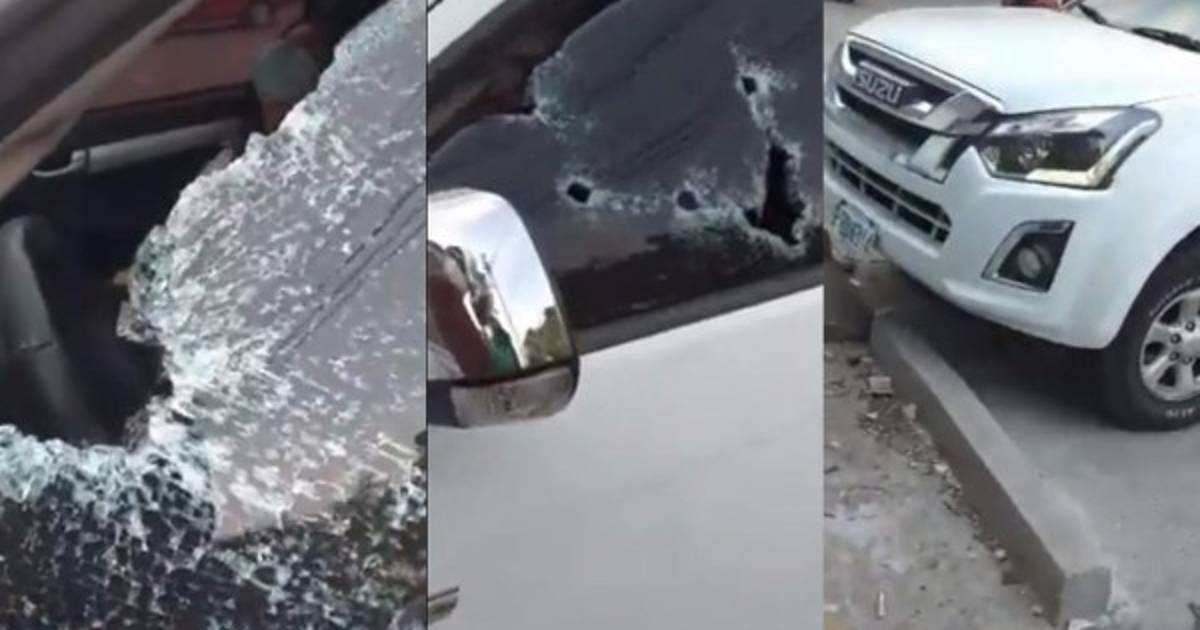 El vidrio del lado del conductor tiene al menos cinco impactos de bala.