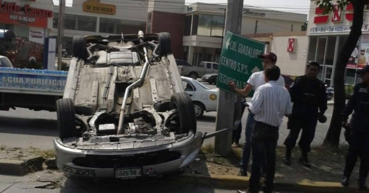 El carro gris de Martínez quedó con las llantas para arriba.