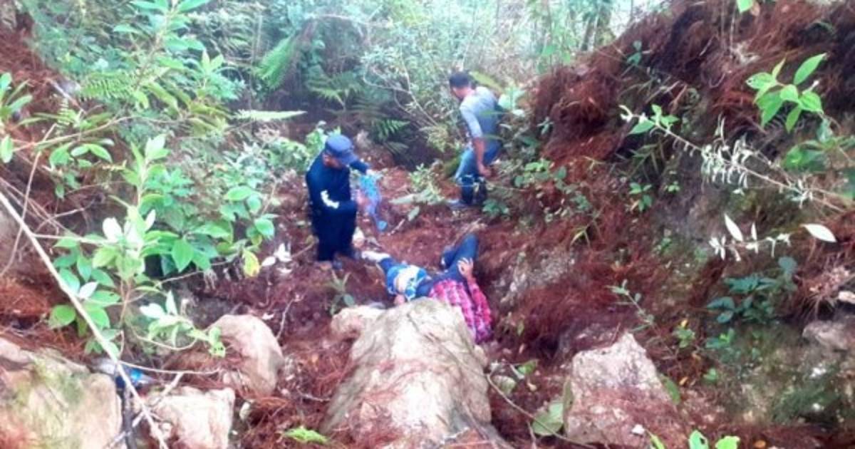 Pobladores y policías ayudan a movilizar a los heridos desde el despeñadero a la carretera.