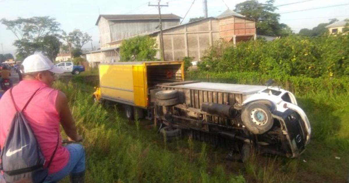 La rastra quedó volcada varios metros fuera de la carretera al igual que la motocicleta y su conductor.