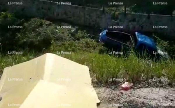 El automóvil accidentado quedó con las llantas hacia arriba en la hondonada, pero los vecinos del sector le dieron vuelta para socorrer a las personas heridas.