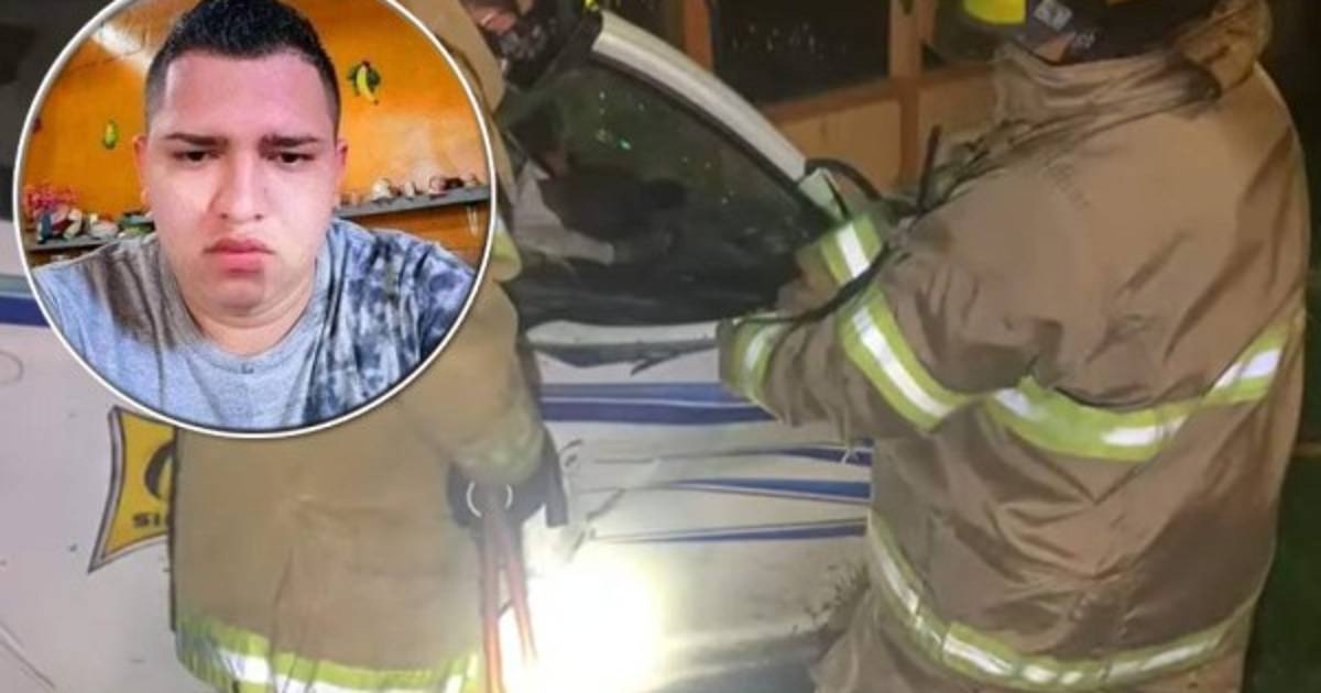 Bomberos sacando los cuerpos sin vida de los dos jóvenes.