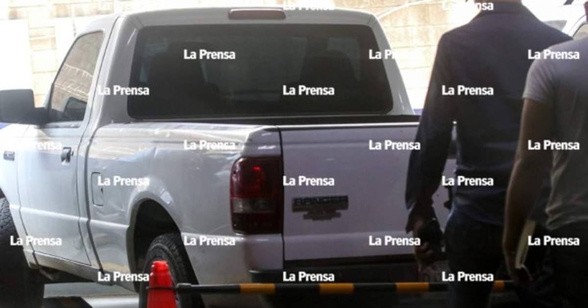El pick up blanco, marca Ford, cabina sencilla, es inspecionado por la Dirección Policial de Investigaciones (DPI).