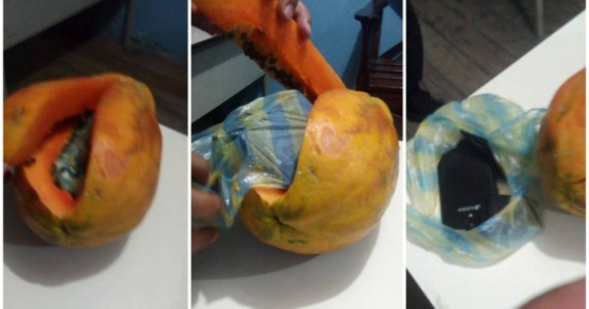 La fémina intentó pasar desapercibido dentro de una papaya un teléfono celular cuando pretendía hacer una visita a su marido recluido.