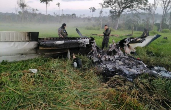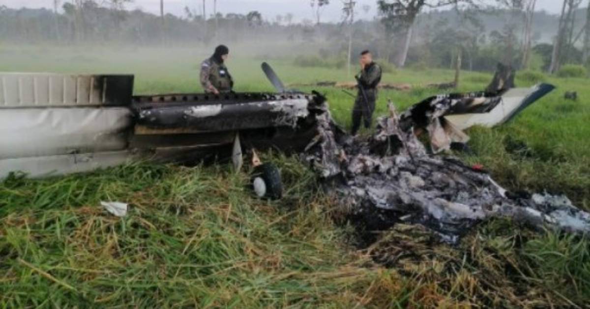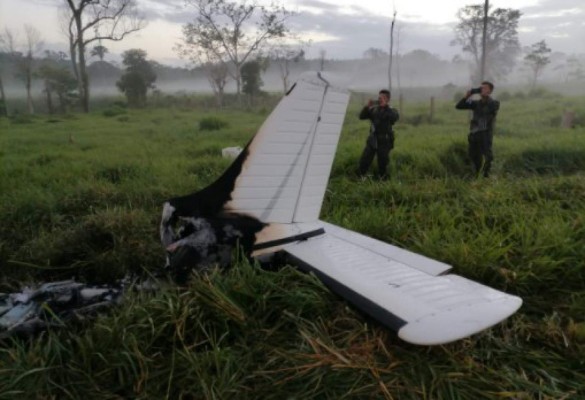 Las Fuerzas Armadas de Honduras (FFAA) informaron que encontraron incinerada la avioneta, aparentemente cargada con droga.