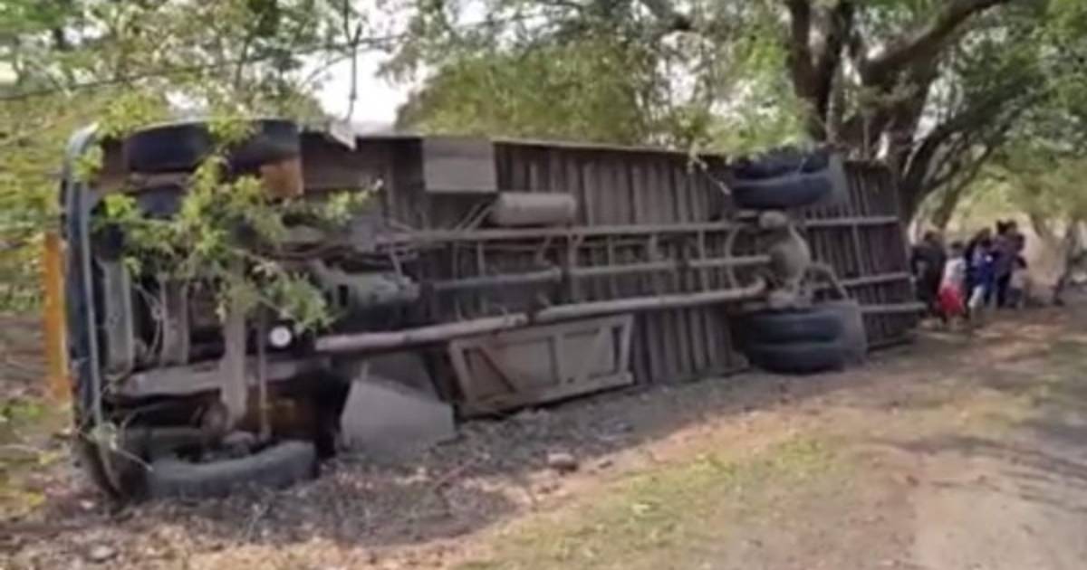 El bus cubre la ruta de Coyolito-San Lorenzo. Según datos preliminares, el conductor iba a exceso de velocidad y esto provocó que el bus se volcara.