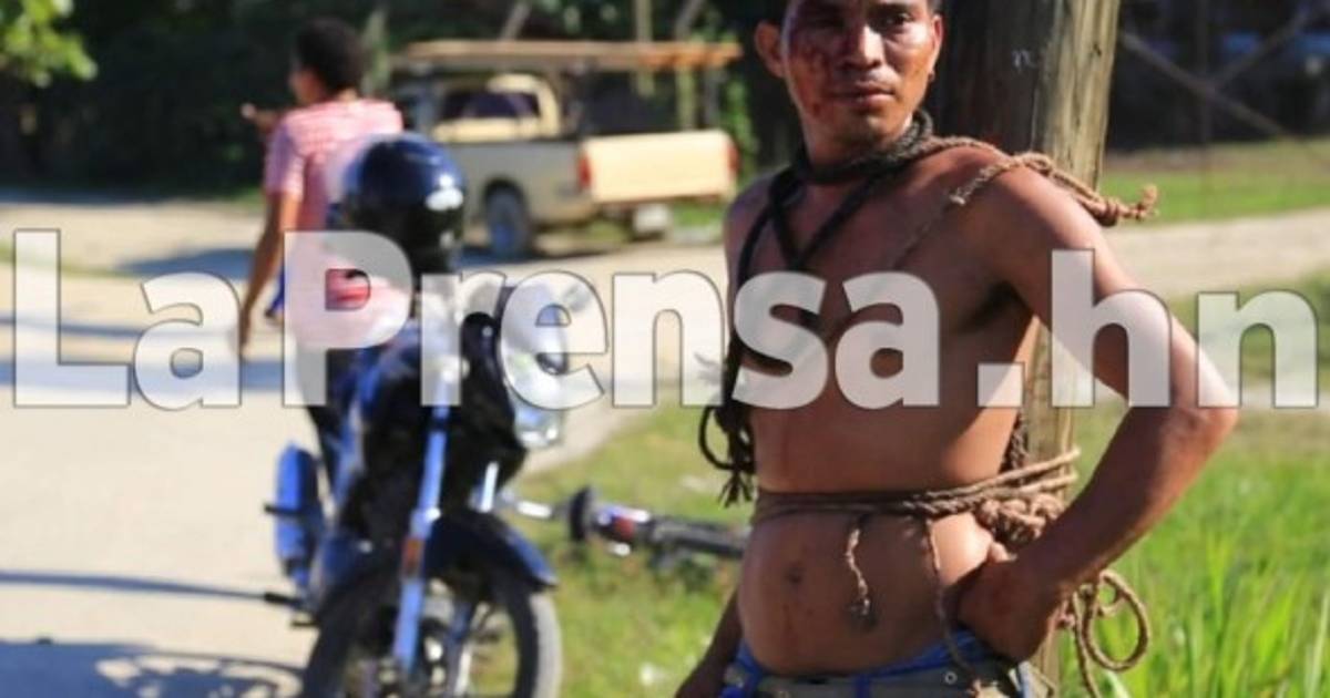 Al bajarlo del bus, todos los pasajeros comenzaron a golpearlo, y no conformes lo amarraron con lazos a un poste del tendido eléctrico.