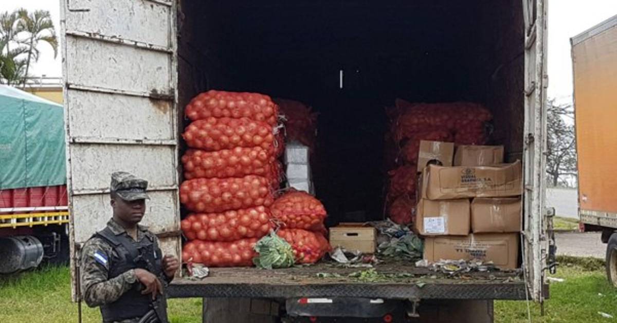 Elemento de Fusina, en el marco de la Operación Morazán, detuvieron a un hombre con varios quintales de verdura ilegal en el retén de la aldea El Jaral de Santa Rita, departamento de Copán, occidente de Honduras.