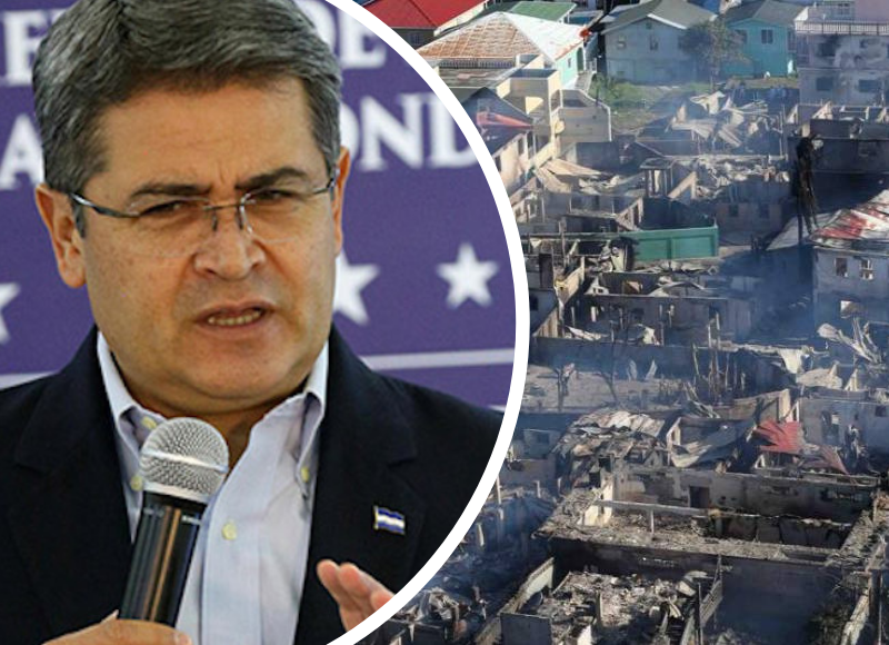 El presidente de Honduras, Juan Orlando Hernández visitó este martes la isla de Guanaja, lugar fuertemente afectado por las llamas.