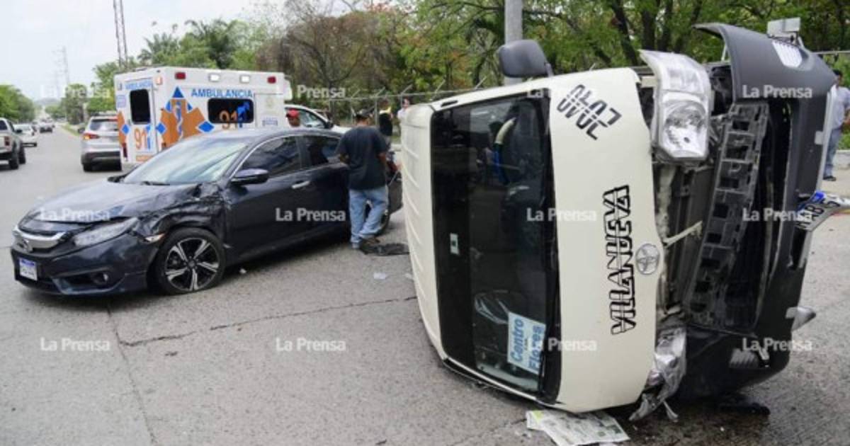 En el microbús solo iban el motorista y el ayudante, y en el otro carro el conductor y una acompañante; afortunadamente las cuatro personas resultaron solo con heridas leves.