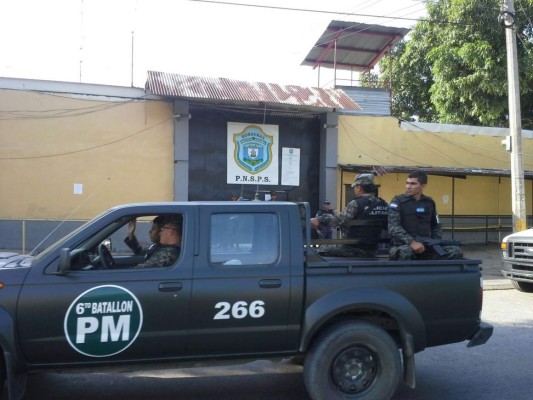 Agentes de la Policía Militar al momento de llegar al centro penal de San Pedro Sula.