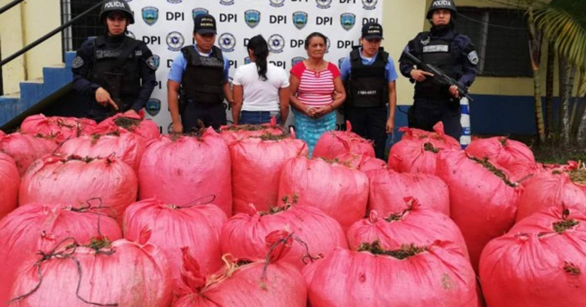 Agentes de la Policía Nacional detuvieron la tarde de este lunes a una mujer y una jovencita que custodiaban más de 30 sacos de supuesta marihuana en la aldea Cuaca, municipio de Tocoa, en el litoral Caribe hondureño.