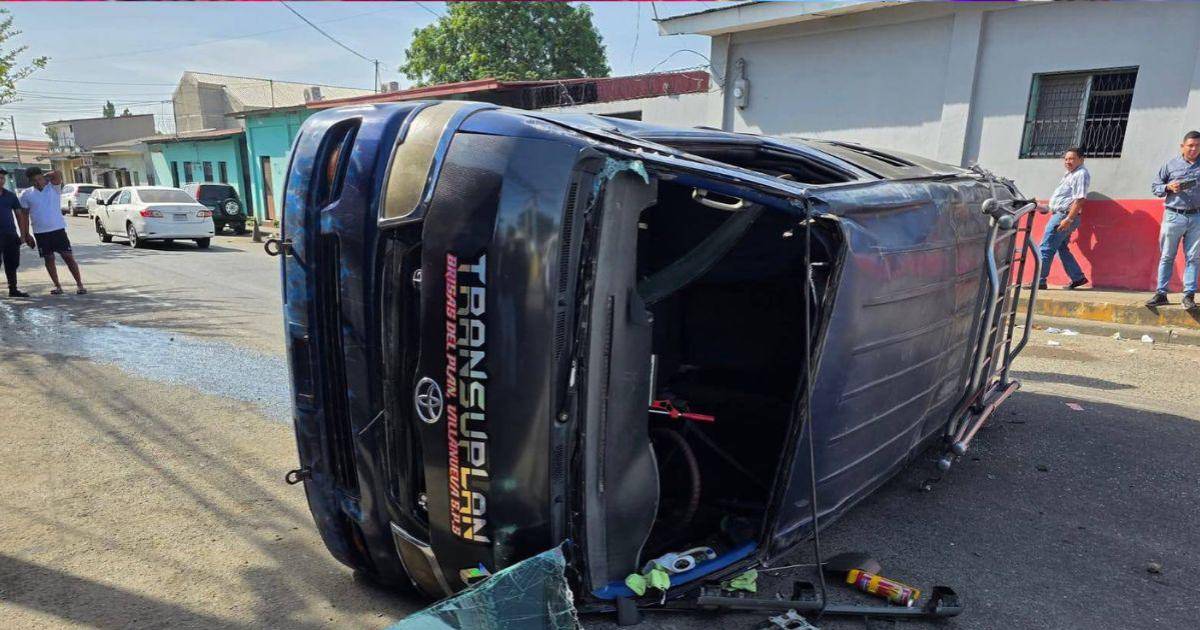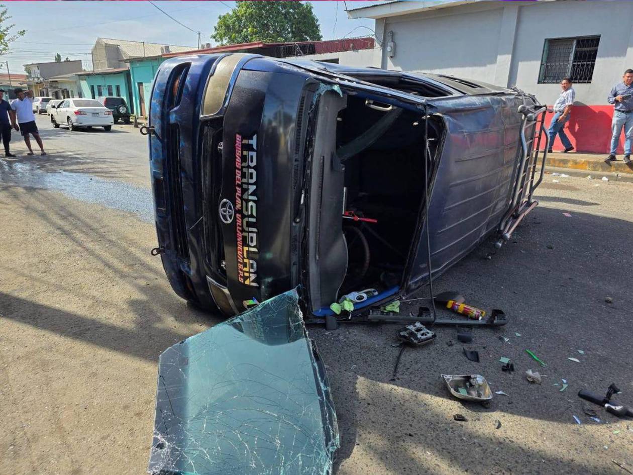El impacto provocó el volcamiento del 'rapidito' y dejó dañado al taxi, ocurrió específicamente en la intersección de la 10 calle y la 2ª avenida de San Pedro Sula.