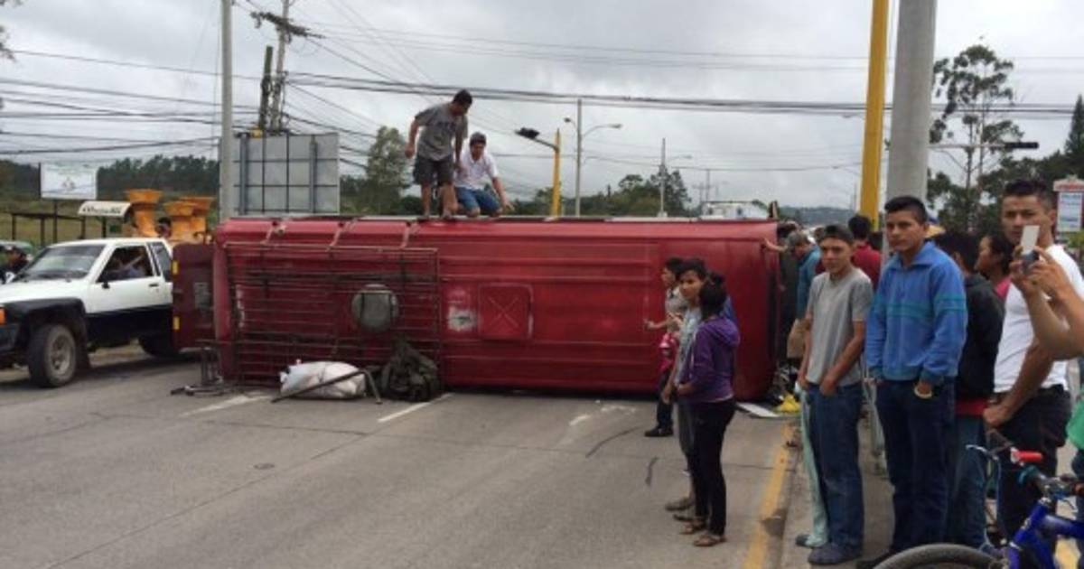 Un bus de transporte público de la ruta Comayagua-San Pedro Sula-La Libertad se dio vuelta a la altura de la entrada de Siguatepeque, en la zona central de Honduras.