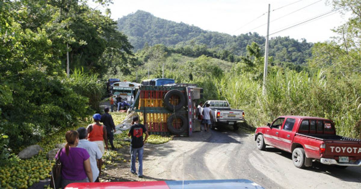 Jutiapa, Atlántida. Un camión cargado de naranjas volcó la tarde de ayer luego que los frenos le fallaran cuando iba en una bajada.