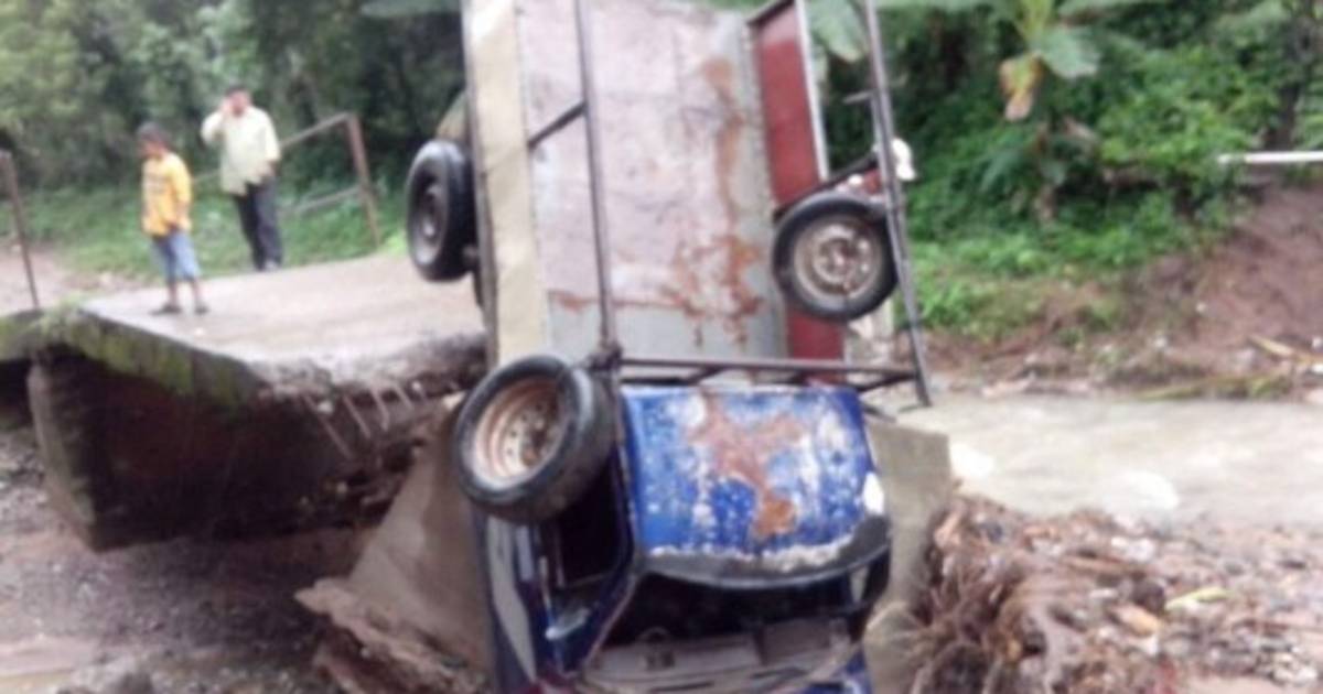 El vehículo cruzaba el puente cuando se vino abajo a causa de la fuerte corriente de agua provocada por las lluvias.