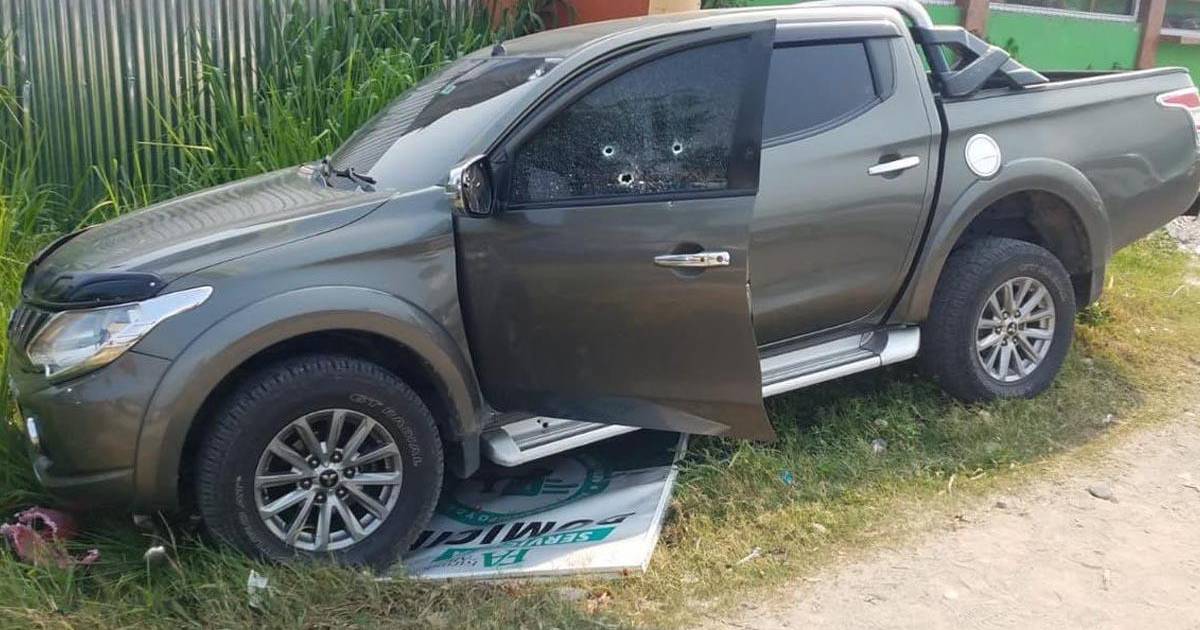 La dama conducía un carro tipo pick up Mitsubishi con placas PAE 2548, el cual tiene varios oficios de arma de fuego en e vidrio de la puerta del conductor.