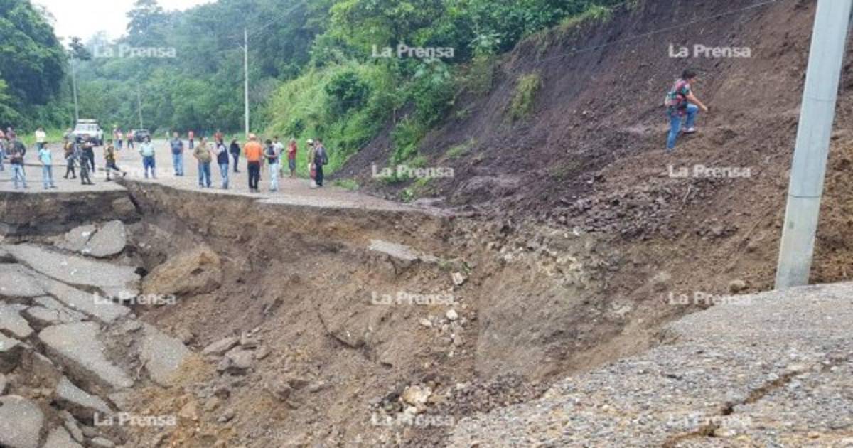 Desde ayer, debido a la saturación de suelos por las lluvias, en la comunidad de El Metal, municipio de Cucuyagua, un hundimiento del tramo carretero, dejó incomunicadas las aduanas de El Poy y Agua Caliente, al igual que los 16 municipios de Ocotepeque y el Sur de Copán.