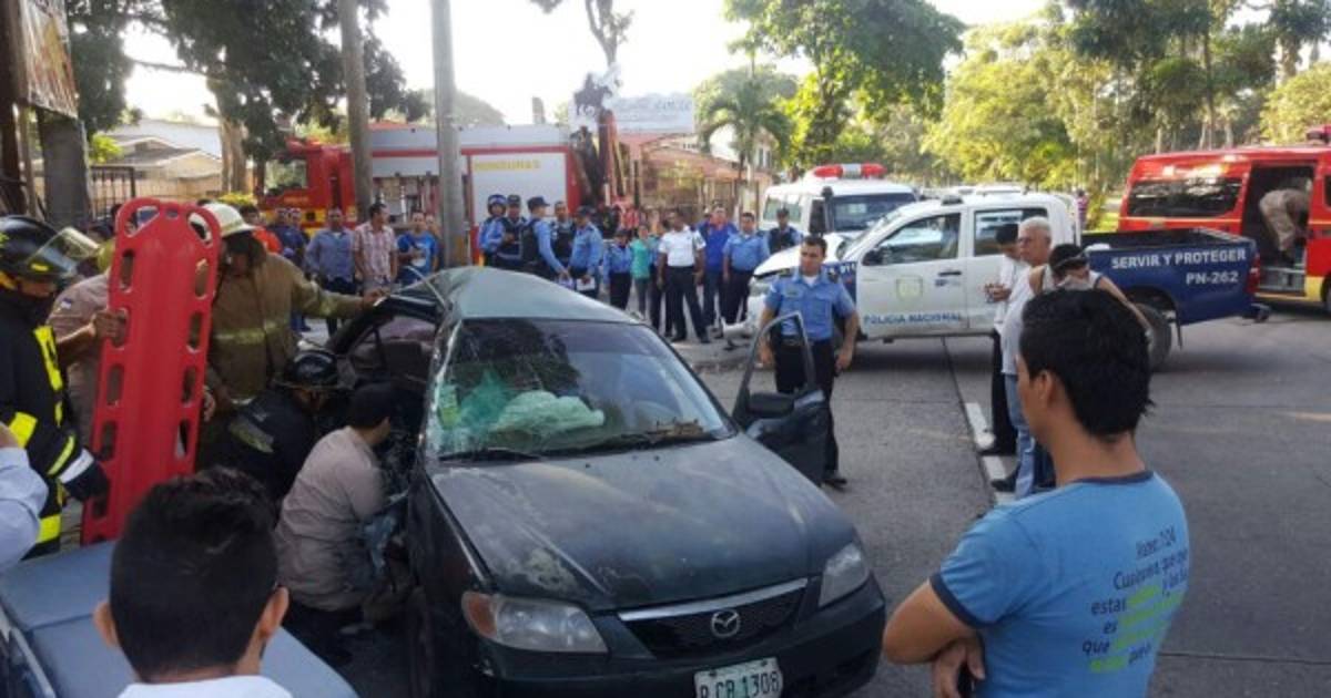 Tres heridos dejó un accidente entre un carro turismo y una patrulla de la Policía en la 6 calle y 12 avenida del barrio Los Andes de San Pedro Sula.