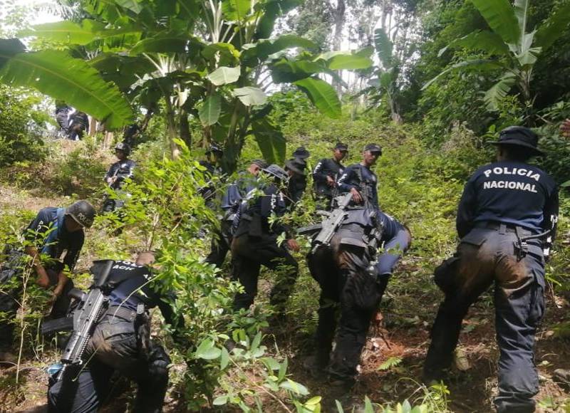 Funcionarios policiales encontraron una plantación de aproximadamente una hectárea de supuesto arbusto de coca en el sector conocido como Montaña Las Flores, perteneciente a la aldea Queseras.