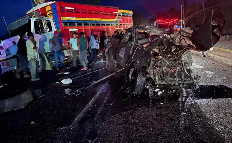Al llegar a la aldea de Las Mesas invadieron el carril contrario e impactaron de frente contra un camión que circulaba por la zona e iba cargado de reses desde Patuca, Olancho, hasta Siguatepeque.