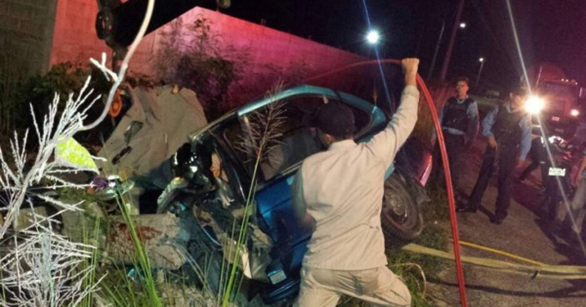 Según el reporte de la Policía, el accidente se produjo en horas de la madrugada y tuvieron que llegar elementos del Cuerpo de Bomberos para extraer al conductor que había quedado atrapado entre el amasijo de hierro.