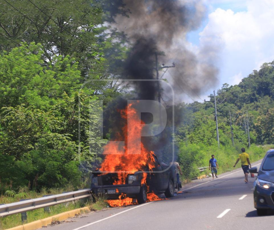 En la carretera CA-5 en la zona de Caracol, Potrerillos, Cortés, zona norte de honduras, se incendió un vehículo cargado con sacos de elotes. El lamentable hecho ocurrió el mediodía de este sábado.