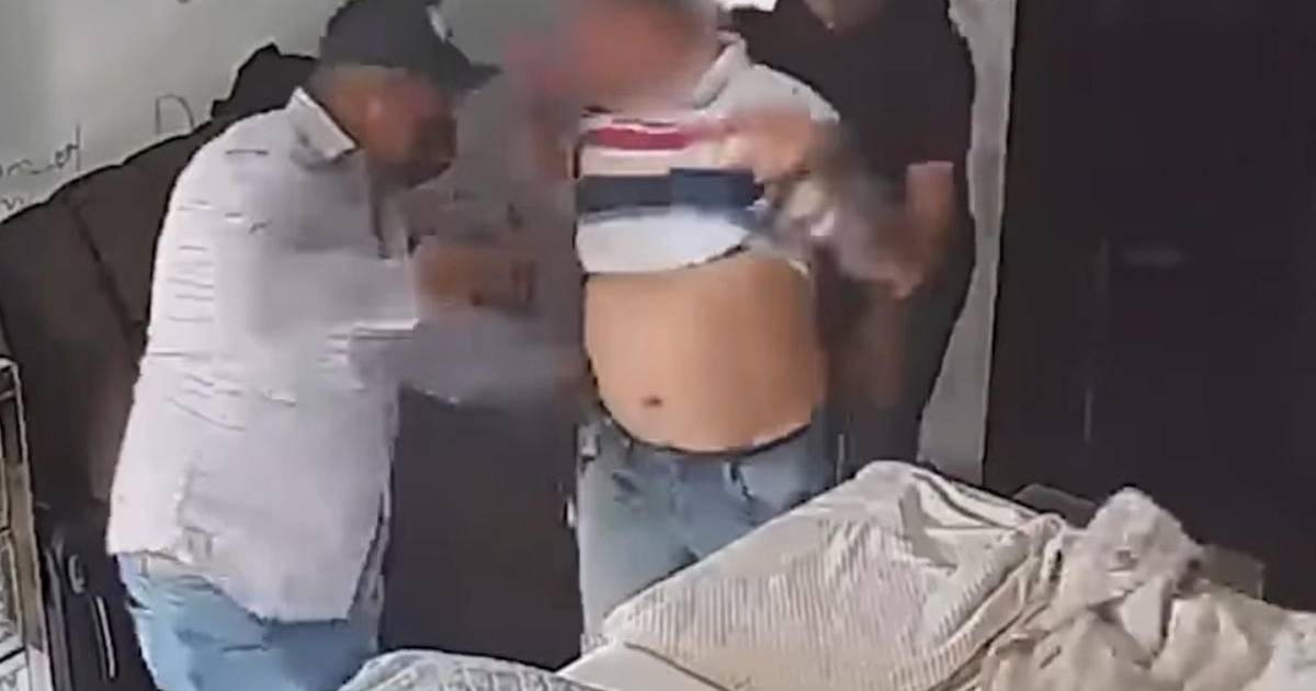 De pronto ingresan dos sujetos con armas de fuego en mano y obligan al hombre a levantarse la camiseta y tras eso lo arrodillan y le quitan las joyas.