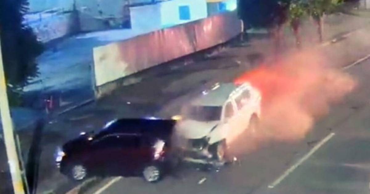 La camioneta, al salirse de la vía sobre una bahía, impacta contra el otro automóvil y lo arrastra por al menos 15 metros. La velocidad y la potencia arrastrada por la camioneta provocaron que ambos vehículos llegasen hasta impactar contra un poste del tendido eléctrico en ese sector de la capital.