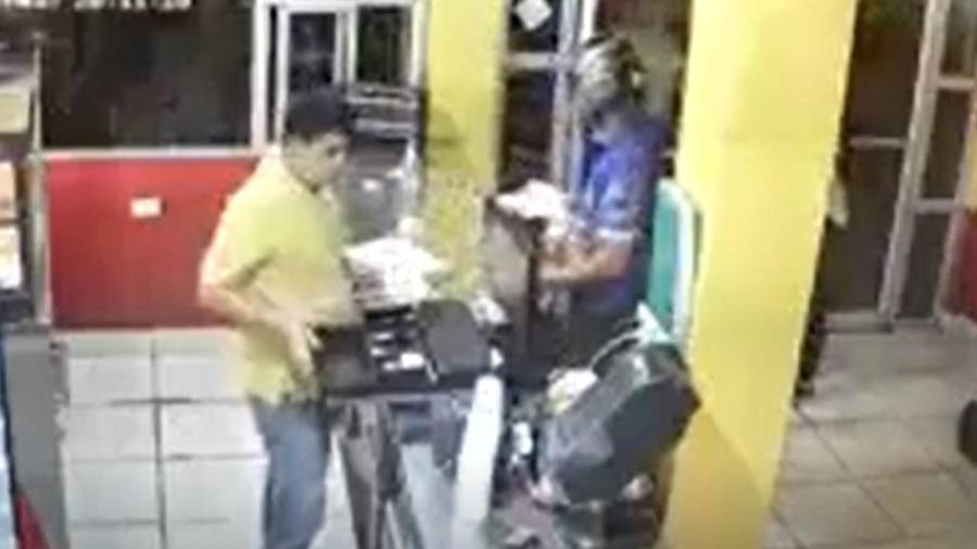La cámara de seguridad de un negocio de venta de pollos en Colón captó el momento en que un sujeto asalta dicho negocio.